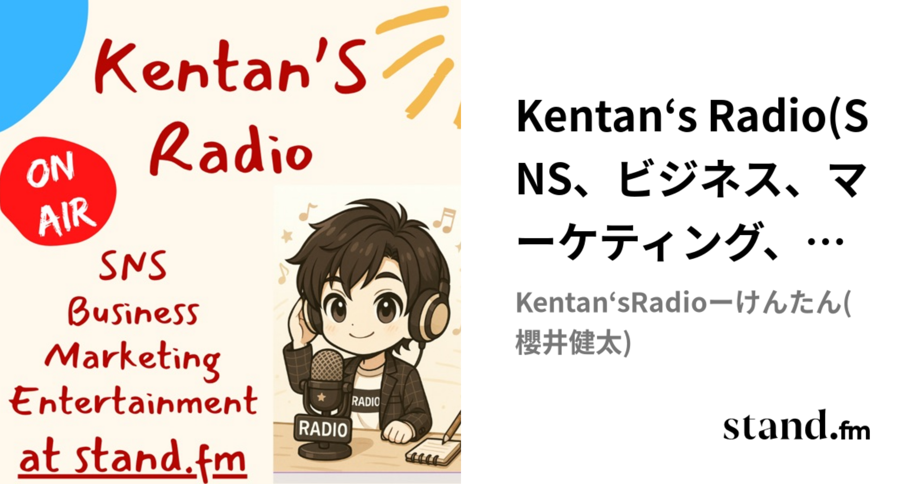 ブログでも書きましたが、けんたんの「スタエフ1年スポンサー」がすでに始まっています。毎朝、彼の放送を聴くと僕の名前が流れてきます。笑