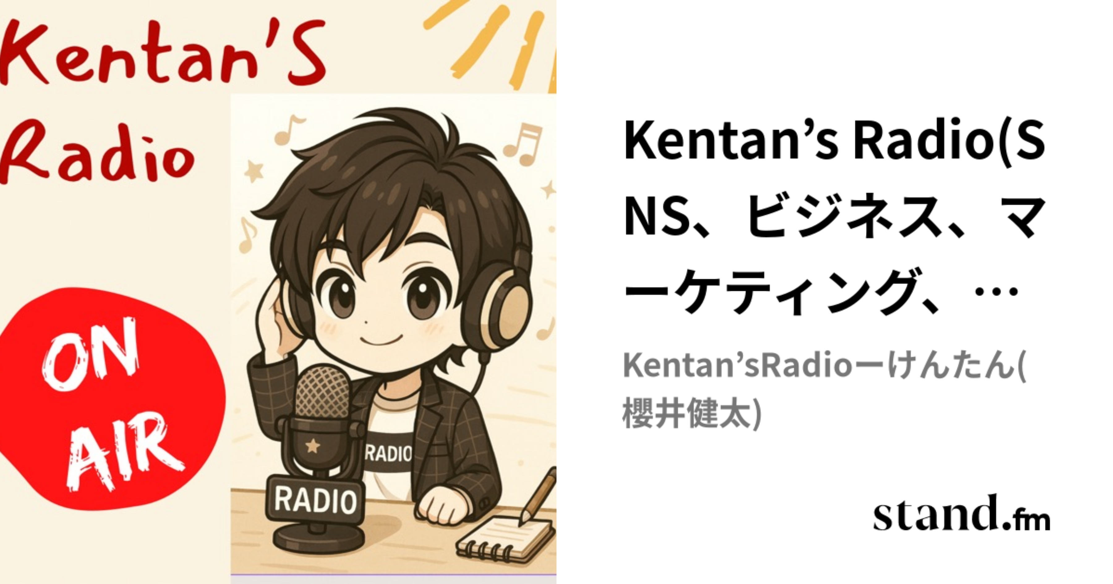 ブログでも書きましたが、けんたんの「スタエフ1年スポンサー」がすでに始まっています。毎朝、彼の放送を聴くと僕の名前が流れてきます。笑